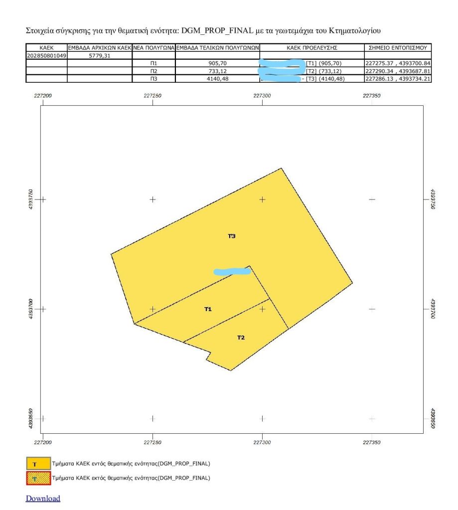 Η «Αναφορά Σύγκρισης» είναι μια νέα λειτουργία ελέγχου που παράγεται από το σύστημα για τις περιοχές του Κτηματολογίου. Περιέχει συγκριτικά στοιχεία της γεωμετρίας των ακινήτων του υποβληθέντος διαγράμματος σε σχέση με την τρέχουσα κτηματολογική βάση. Τα στοιχεία αυτά παρέχονται τόσο σε μορφή κειμένου όσο και σε ψηφιακή διανυσματική μορφή (SHP).