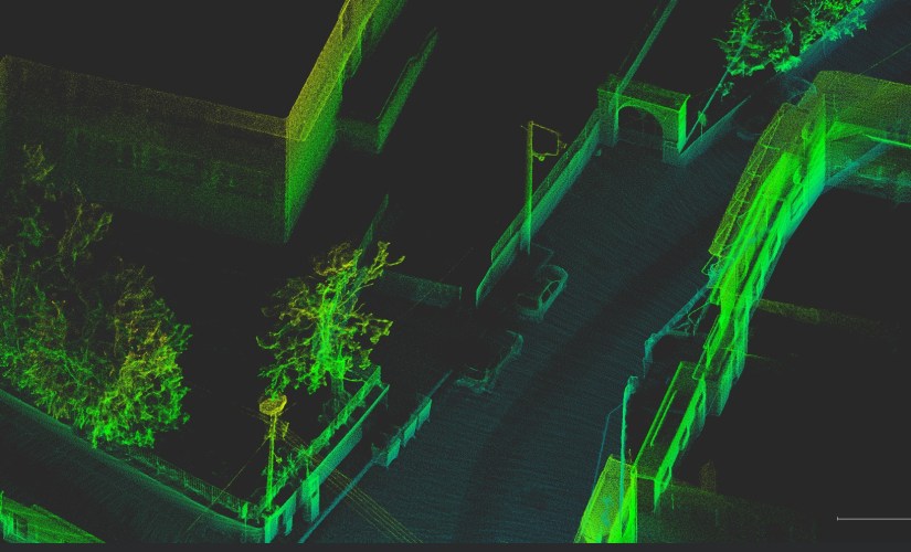The vehicle traveled at approximately 20 km/h through an urban area. At each intersection, the operator made brief stops to record ground control points (GCPs) using both the Trion P1 app and an external RTK receiver. In total, the scanning session lasted around 6 minutes and covered nearly 2 kilometers. Initial visual inspection of the resulting point cloud showed promising quality and detail, although a full assessment of geometric accuracy has not yet been conducted.